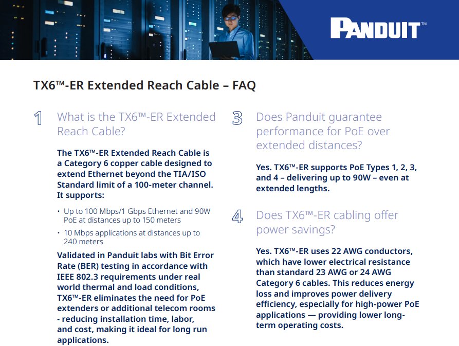 Explore the benefits of Panduit’s Extended Reach cable—learn what sets it apart, common applications, and why you can trust Panduit to deliver proven performance beyond the standards.
